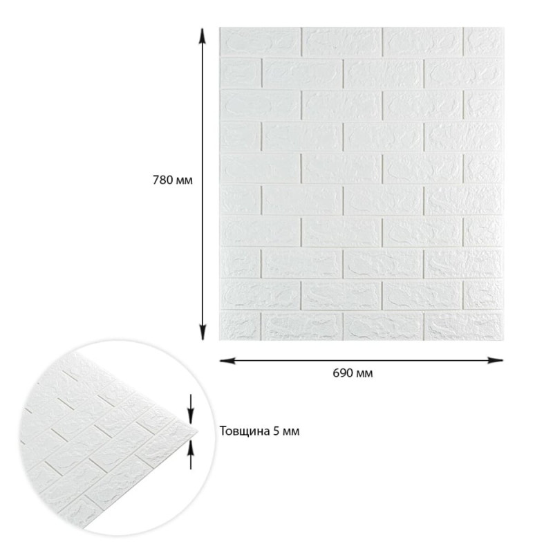 3D панель самоклеюча 690х780х5мм цегла Білий (001-5) SW-00000029