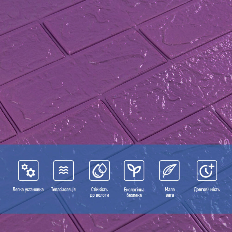 3D панель самоклеюча 700х770х3мм цегла Фіолетова (016-3) SW-000003248