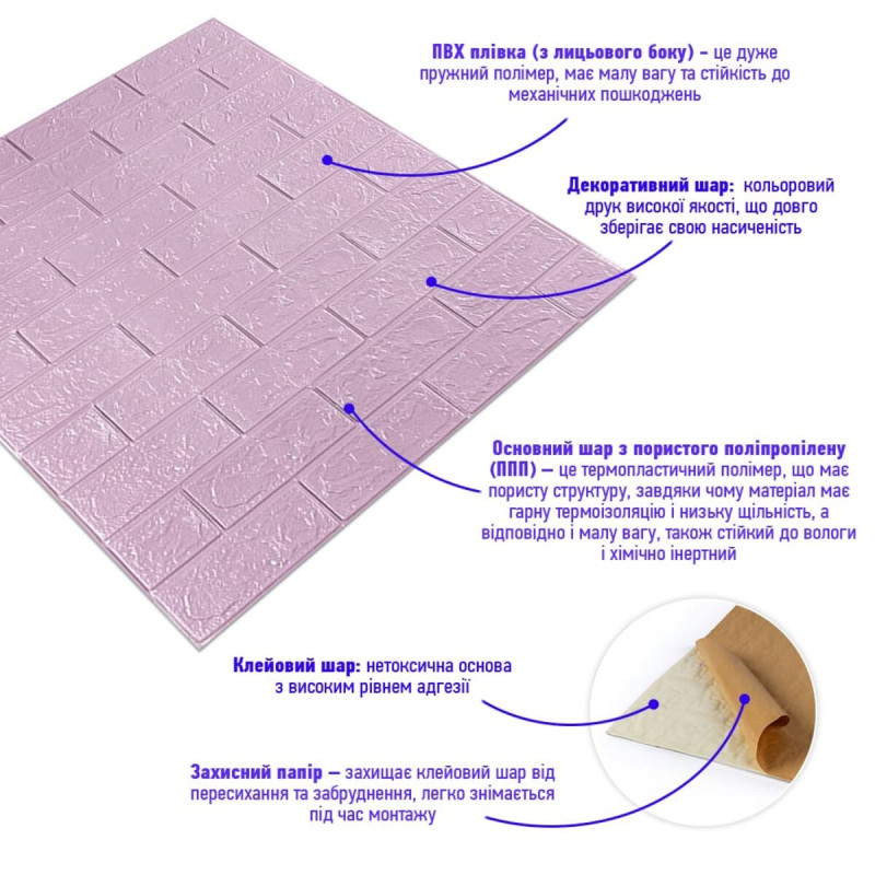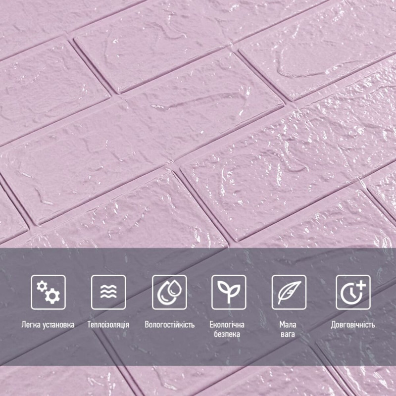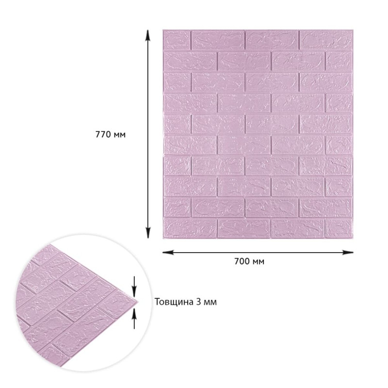 3D панель самоклеюча 700х770х3мм цегла Світло - фіолетова (015-3) SW-00000574