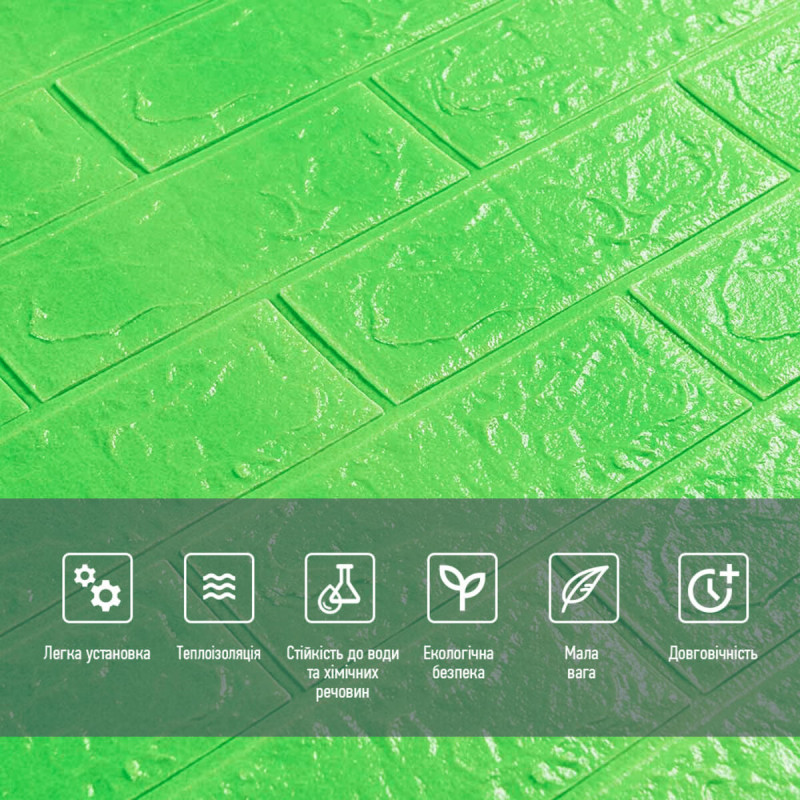 3D панель самоклеюча 700х770х3мм цегла Зелена (013-3) SW-00000639