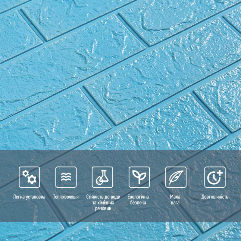 3D панель самоклеюча 700х770х5мм цегла Блакитна (005-5) SW-00000297
