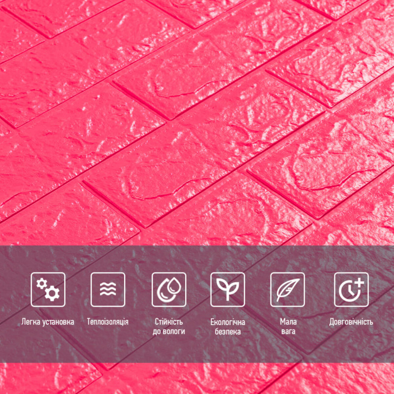 3D панель самоклеюча 700х770х5мм цегла Малинова-червона (108-5) SW-00001364
