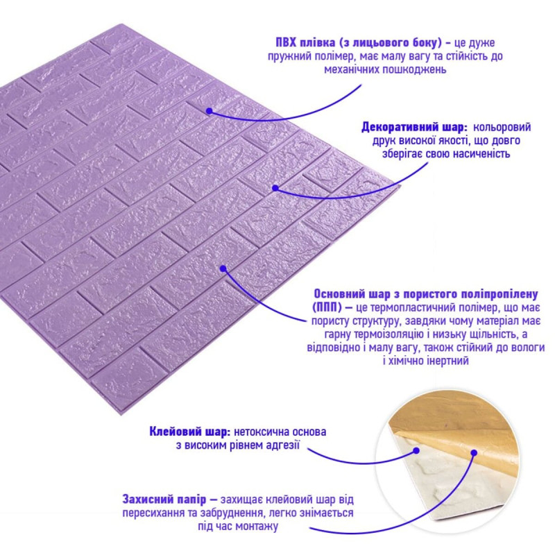 3D панель самоклеюча 700х770х5мм цегла світло - фіолетова (015-5) SW-00000083