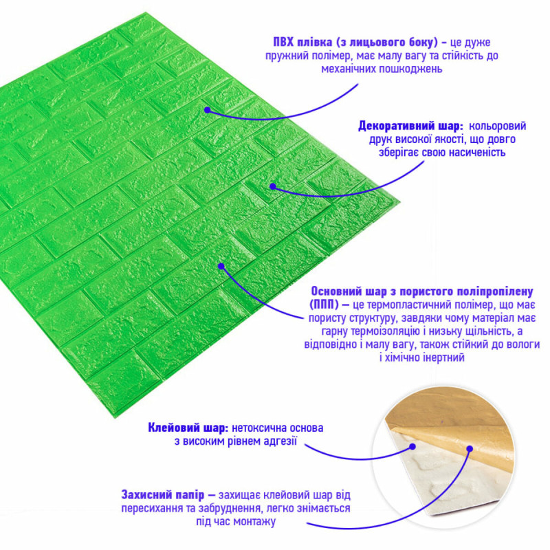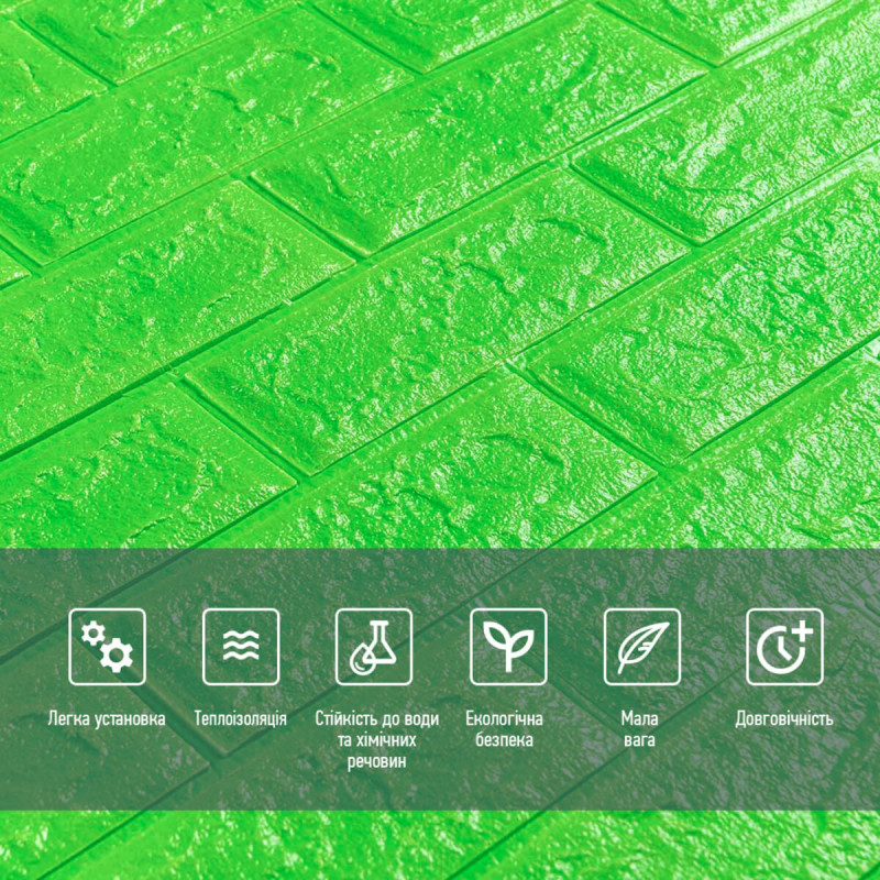 3D панель самоклеюча 700х770х5мм цегла Зелений (013-5) SW-00000149