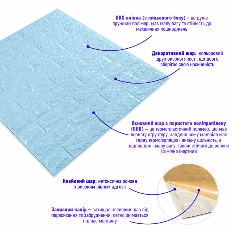 3D панель самоклеюча 700х770х7мм цегла Блакитна (005-7) SW-00000658