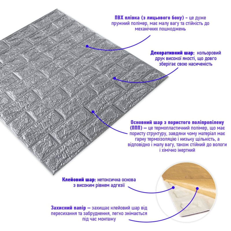 3D панель самоклеюча 700х770х7мм цегла Срібло (017-7) SW-00000059