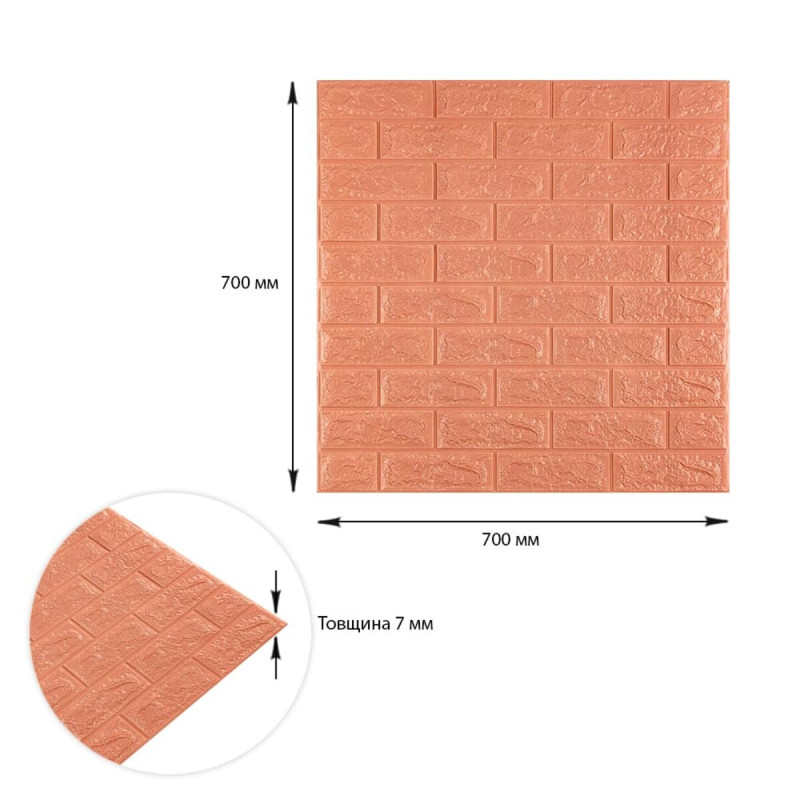 3D панелі самоклеючі – декоративне покриття для стін, виконане з легкого та міцного матеріалу – пористого поліпропілену (ППП). Основна особливість – рельєфний малюнок у вигляді цегли у широкому різноманітті кольорів та наявність клейового шару, що дозволяє встановити панелі без необхідності застосування додаткових матеріалів.