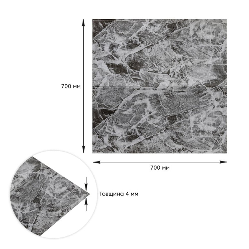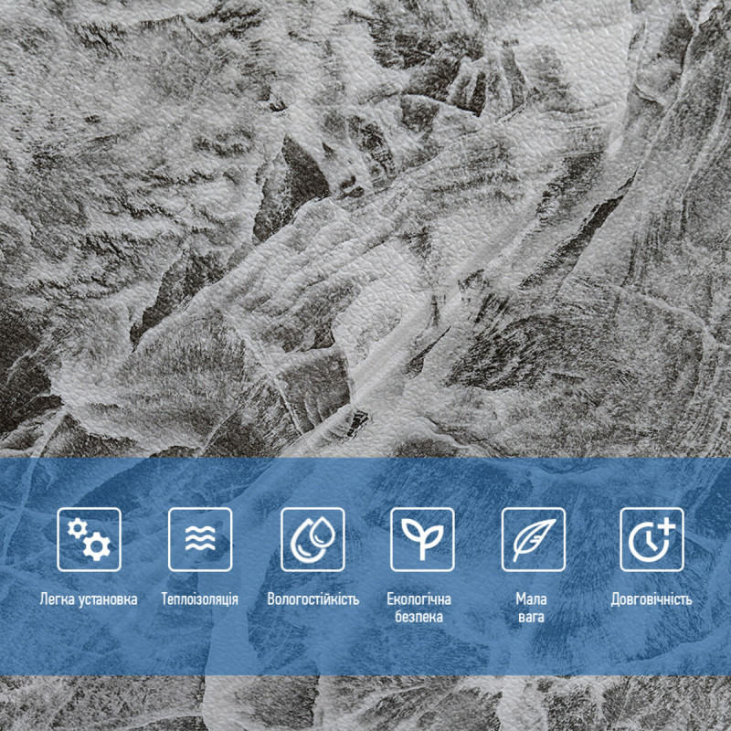 Декоративна панель під мармур виготовлена із спіненого поліпропілену. Це універсальний і щільний матеріал, але водночас легкий. Його термін служби понад 20 років. Самоклеючі 3D панелі з поліпропілену - це швидкий ремонт з мінімумом шуму та будівельного сміття.