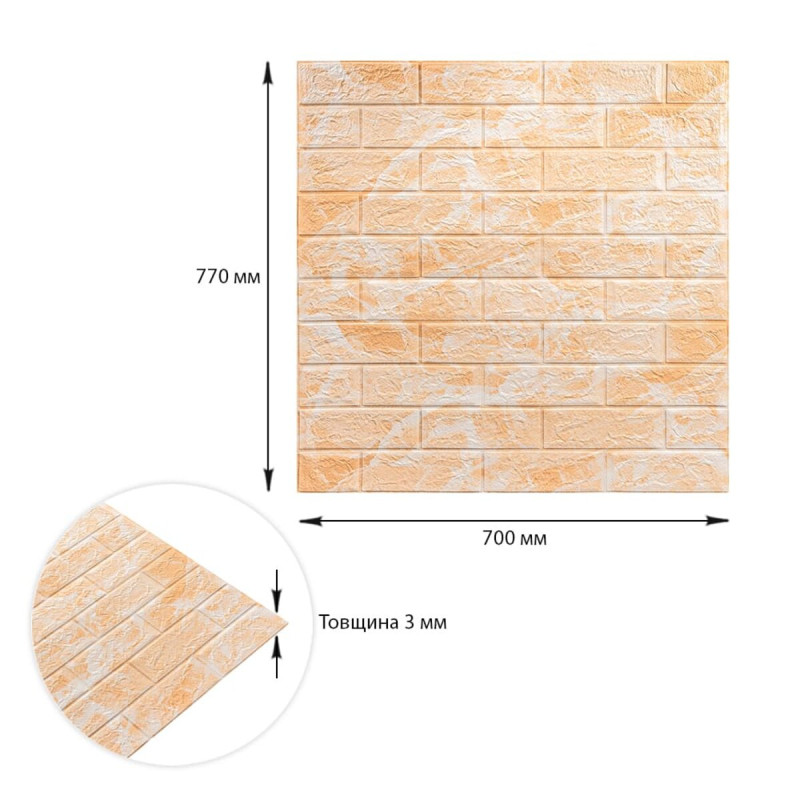 3D панелі самоклеючі – декоративне покриття для стін, виконане з легкого та міцного матеріалу – пористого поліпропілену (ППП). Основна особливість – рельєфний малюнок у вигляді цегли у широкому різноманітті кольорів та наявність клейового шару, що дозволяє встановити панелі без необхідності застосування додаткових матеріалів.