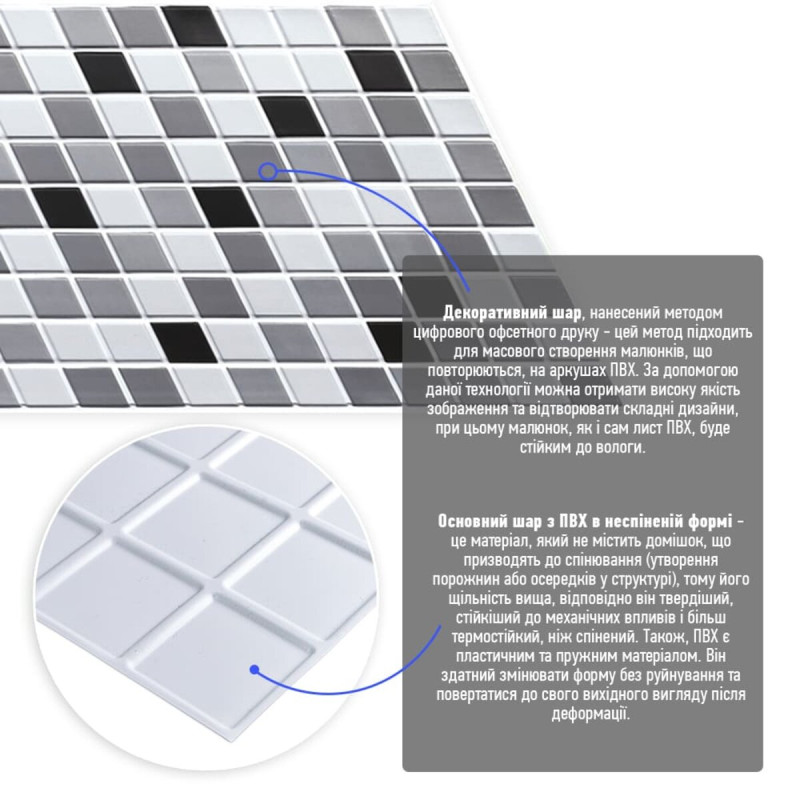 Декоративна ПВХ панель 960х480х4мм Чорно-біла мозаїка SW-00001432
