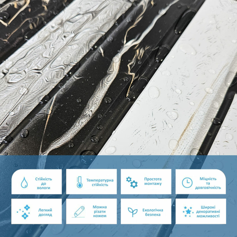 Панелі дуже прості у монтажі, практичні у використанні та довговічні. Для монтажу панелей Вам потрібен буде: клей для ПВХ, ножиці або монтажний ніж, рівень чи лінійка, скотч (для фіксації свіжих панелей).