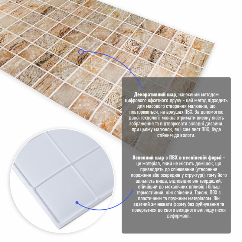 Розмір ПВХ панелі – 960ммх480мм. Товщина – 4 мм.