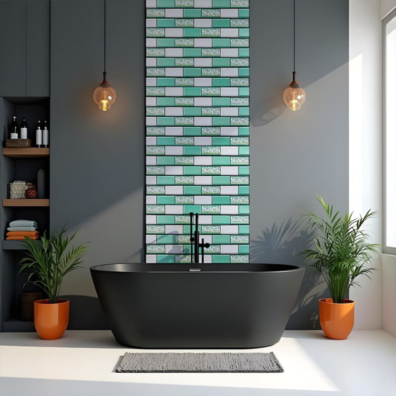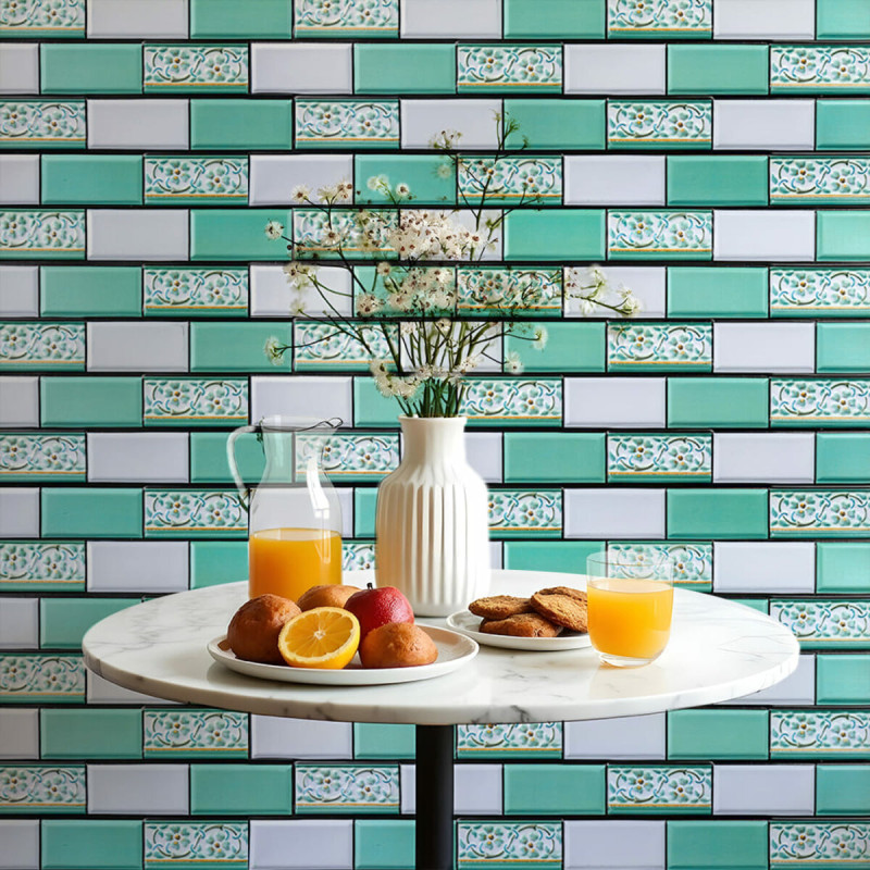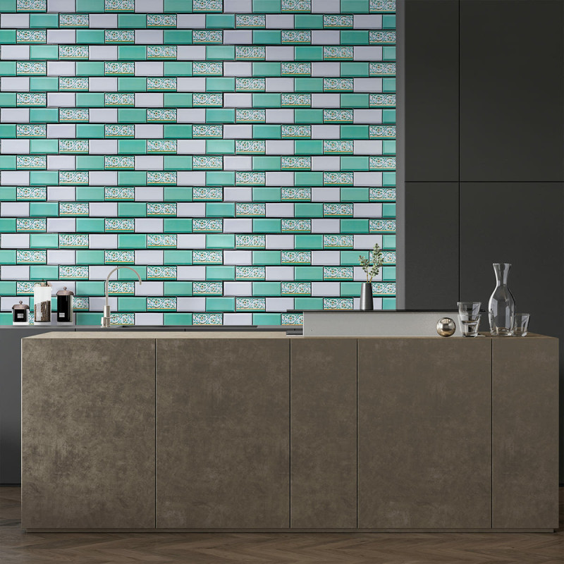 Декоративна ПВХ панель 960х480х4мм Цегла зелений орнамент SW-00001429