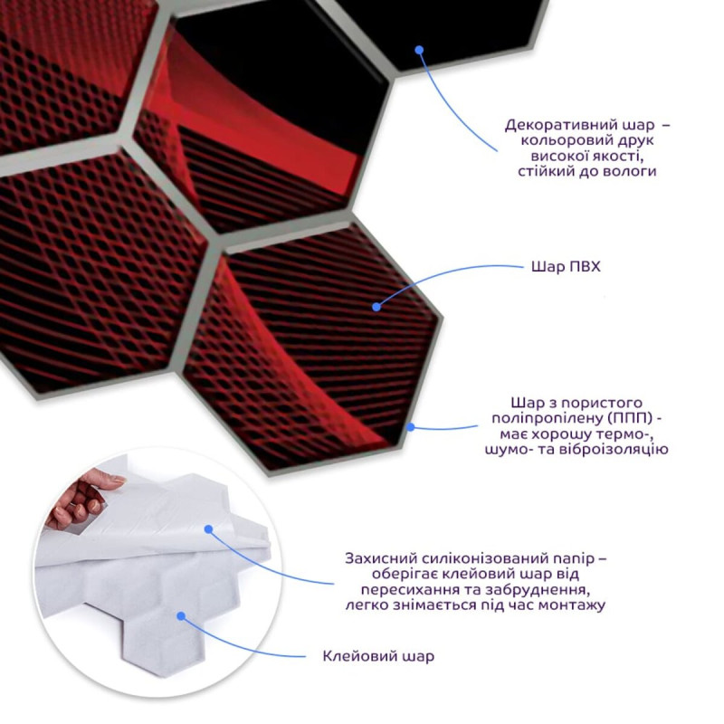 Декоративна ПВХ плитка на самоклейці соти 280х300х5мм, ціна за 1 шт. (СПП-503)
