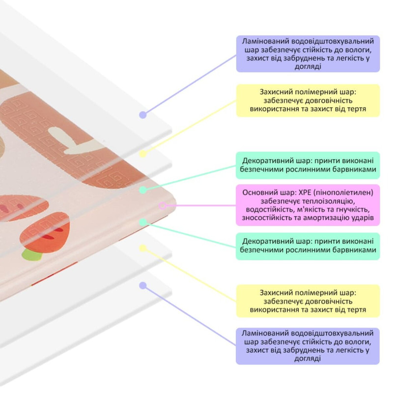 • Не пропускає холоду, а значить дитині буде комфортно грати на підлозі, навіть на плитці;