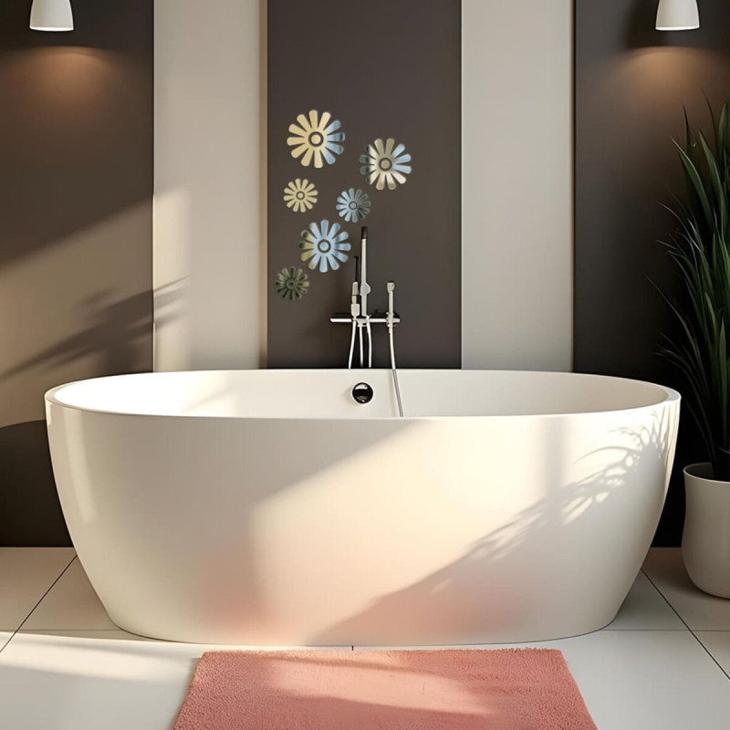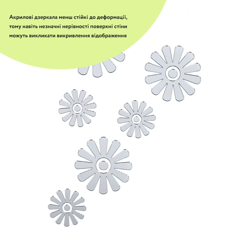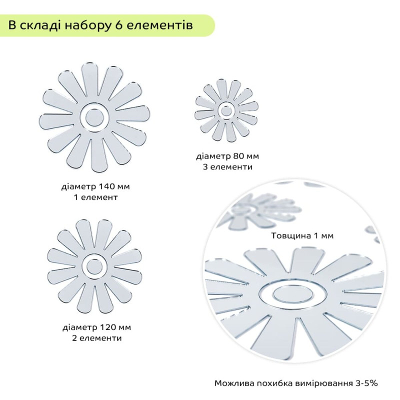 Дзеркальний декор акриловий самоклеючий Квіти срібло, 6шт (D) SW-00002519