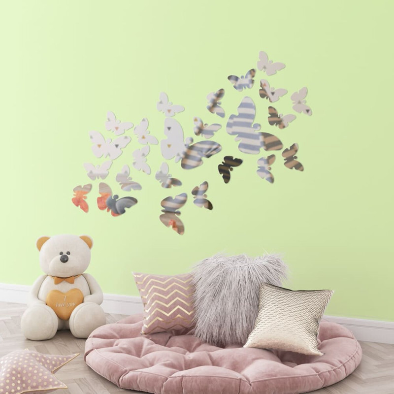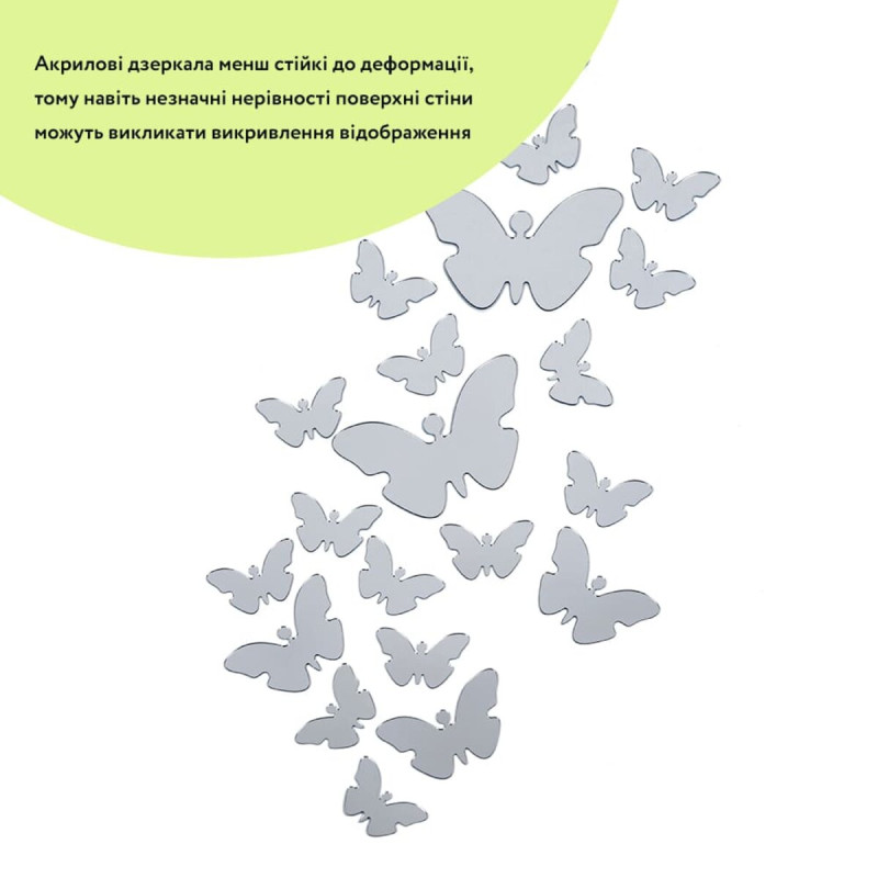 Дзеркальний декор акриловий самоклеючий Метелики срібло,25шт (D) SW-00002521