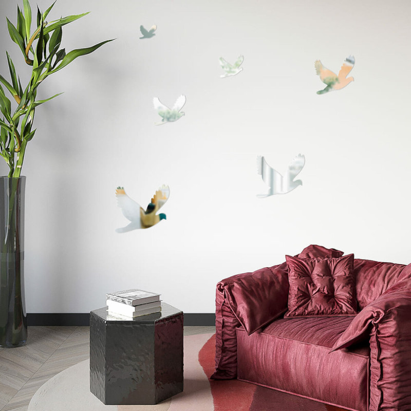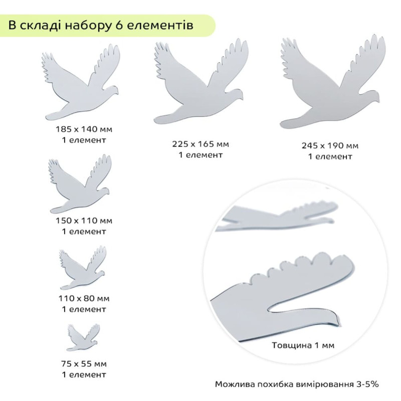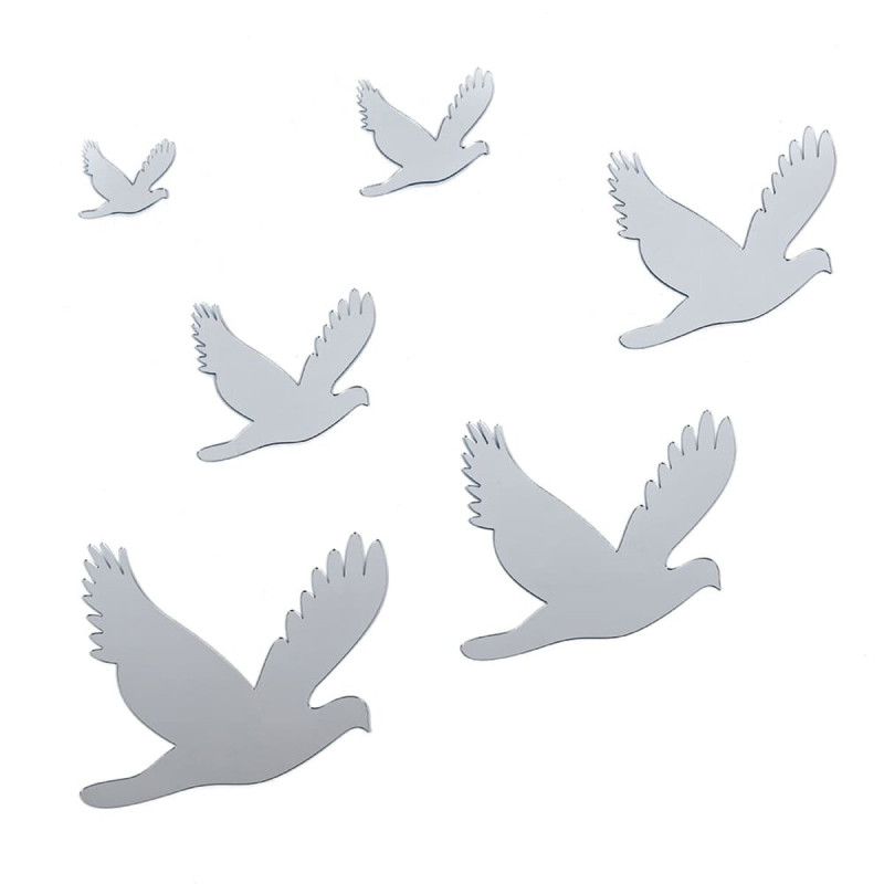 Дзеркальний декор акриловий самоклеючий Птахи срібло, 6шт (D) SW-00002520
