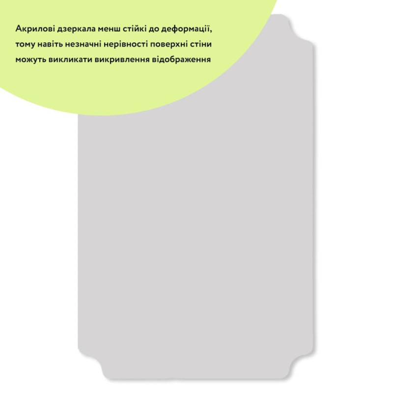 2. Міцність: акрил стійкий до ударів і ламається набагато рідше ніж скло, що робить акрилові дзеркала безпечними.