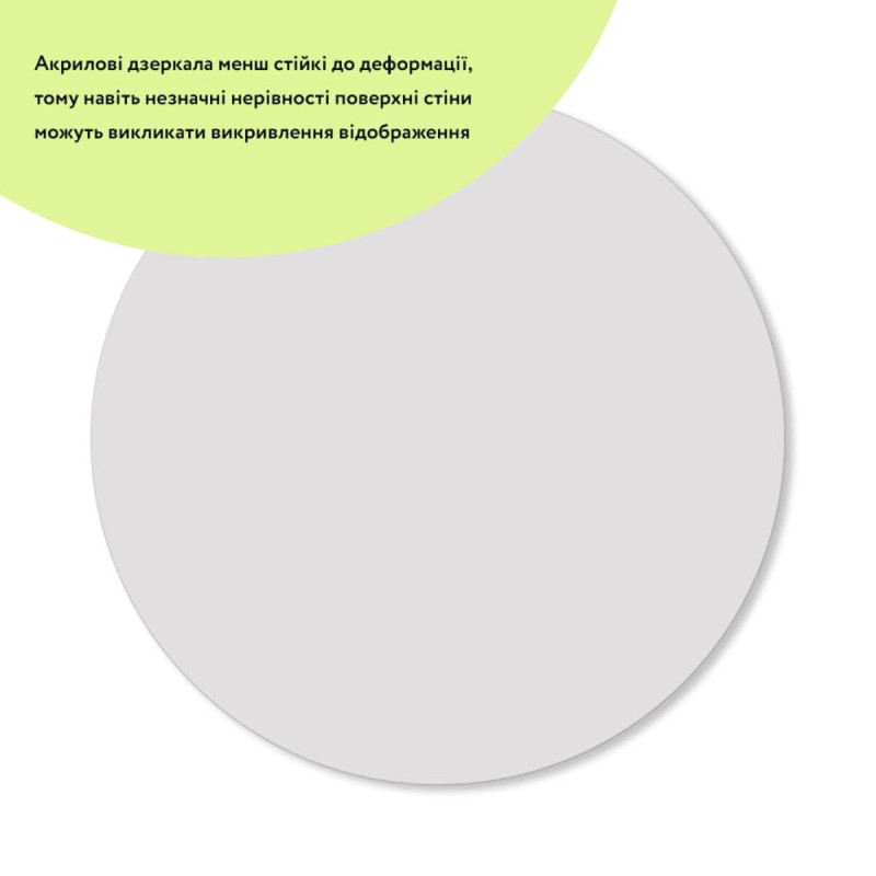 - Міцність: акрил стійкий до ударів і ламається набагато рідше ніж скло, що робить акрилові дзеркала безпечними.