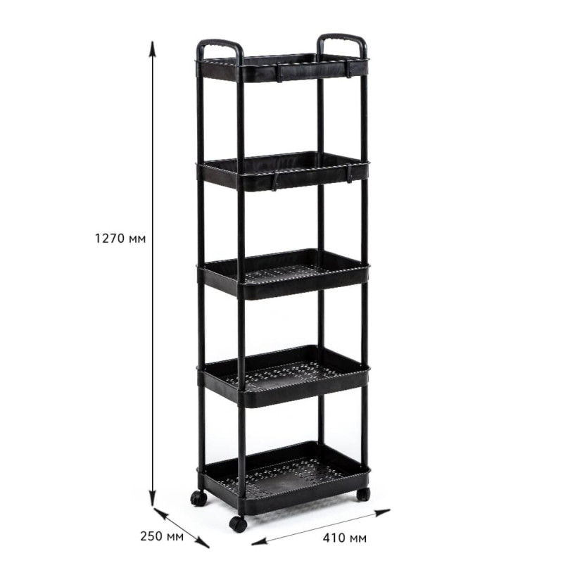 Етажерка мобільна п'ятиярусна універсальна пластикова 41х25х127см Чорна SW-00002109