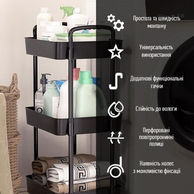 На кухні вони ідеально підходять для зберігання продуктів, посуду та кухонних аксесуарів. У ванній кімнаті такі етажерки зручні для розміщення рушників, засобів особистої гігієни та інших дрібних предметів. У вітальні вони можуть використовуватись для організації зберігання книг, декоративних елементів та іграшок.