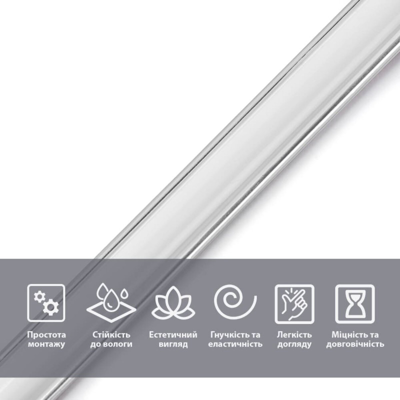 Гнучкість та еластичність: завдяки високій гнучкості молдинг щільно повторює контури навіть вигнутих або нерівних поверхонь, не утворюючи складок чи тріщин.