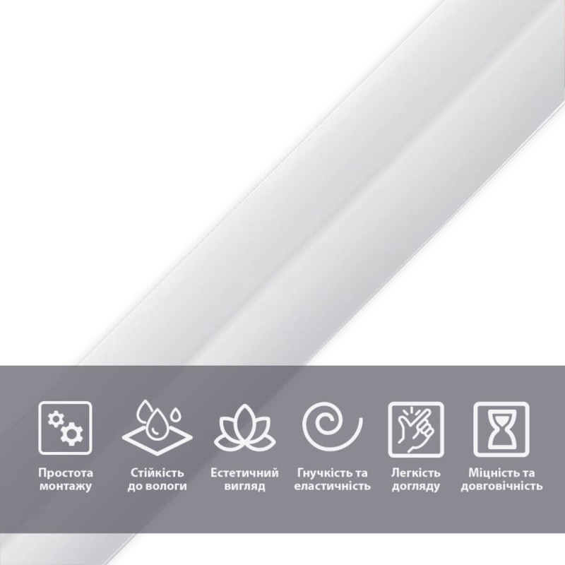 • Гнучкість та еластичність: завдяки високій гнучкості молдинг щільно повторює контури навіть вигнутих або нерівних поверхонь, не утворюючи складок чи тріщин.