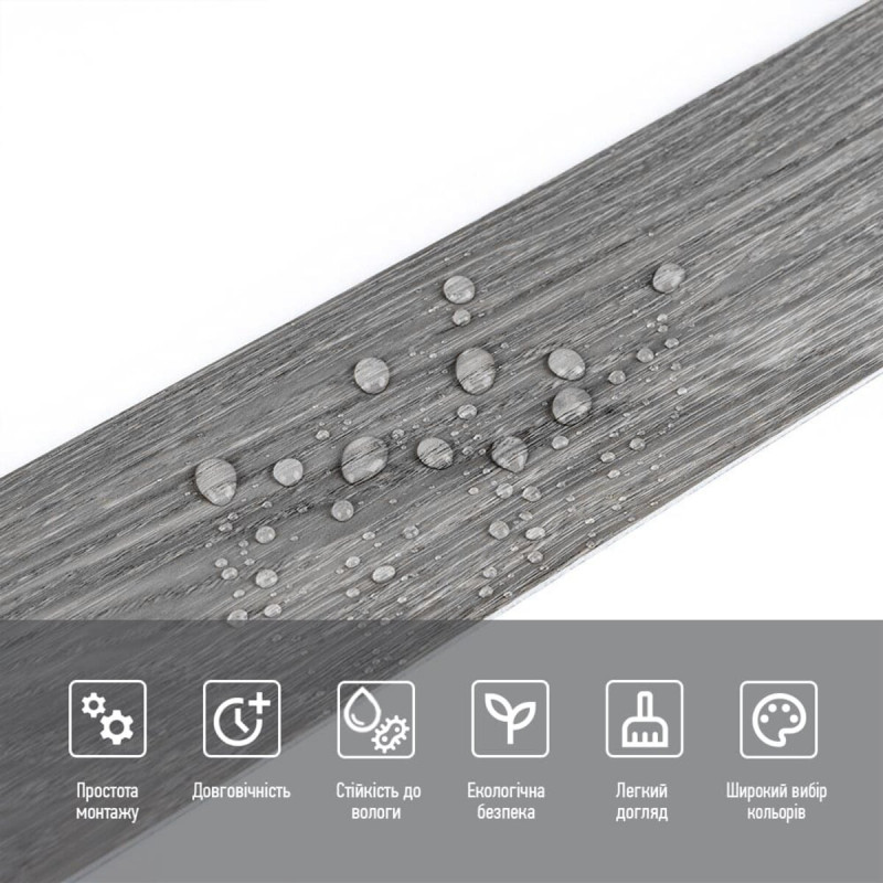 - Полімерний шар, що захищає від потертостей та дрібних механічних пошкоджень, забезпечує довговічність використання, а УФ захист допомагає запобігти вигоранню, зберігаючи колір насиченим, за рахунок чого молдінг довго має свій первинний естетичний вигляд.