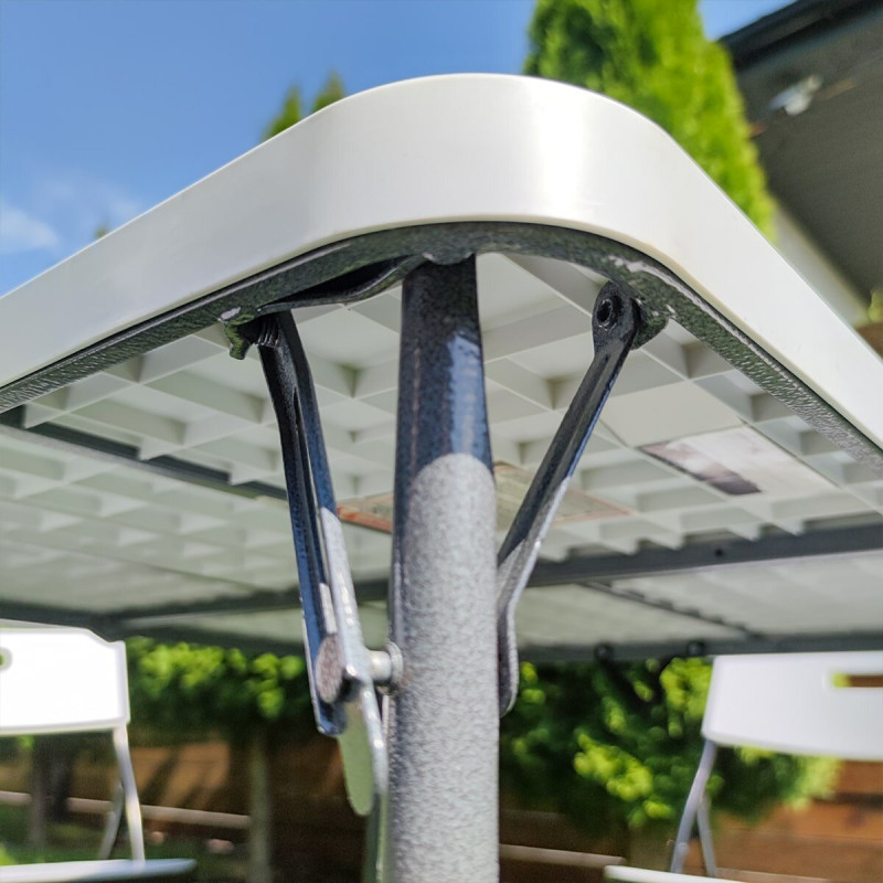 Матеріал: стіл та стілець виконані із пластику високої щільності (чистий HDPE) зі сталевою рамою та ніжками