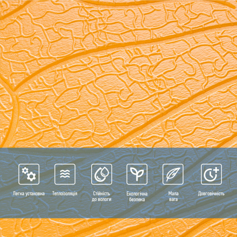 - Легкість монтажу: наявність клейового шару дозволяє встановити панелі без необхідності застосування додаткових матеріалів.