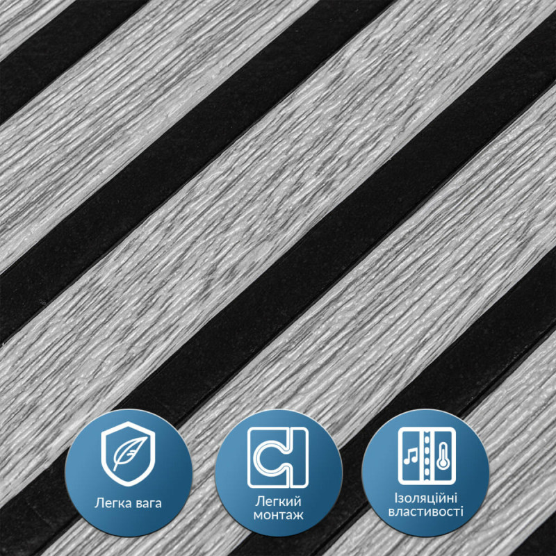 3D панелі самоклеючі – декоративне покриття для стін, виконане з легкого та міцного матеріалу – пористого поліпропілену (ППП). Основна особливість – рельєфний малюнок у вигляді рейок у широкому різноманітті кольорів та наявність клейового шару, що дозволяє встановити панелі без необхідності застосування додаткових матеріалів.