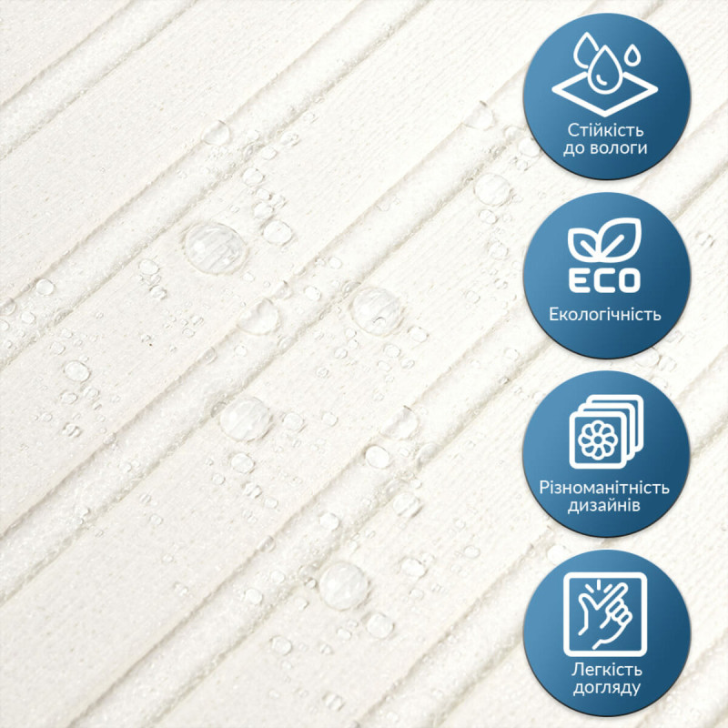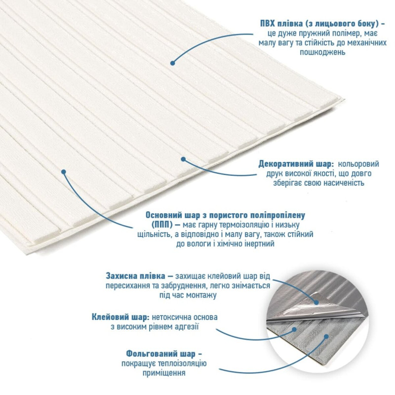 3. Легкість монтажу: наявність клейового шару дозволяє встановити панелі без необхідності застосування додаткових матеріалів.