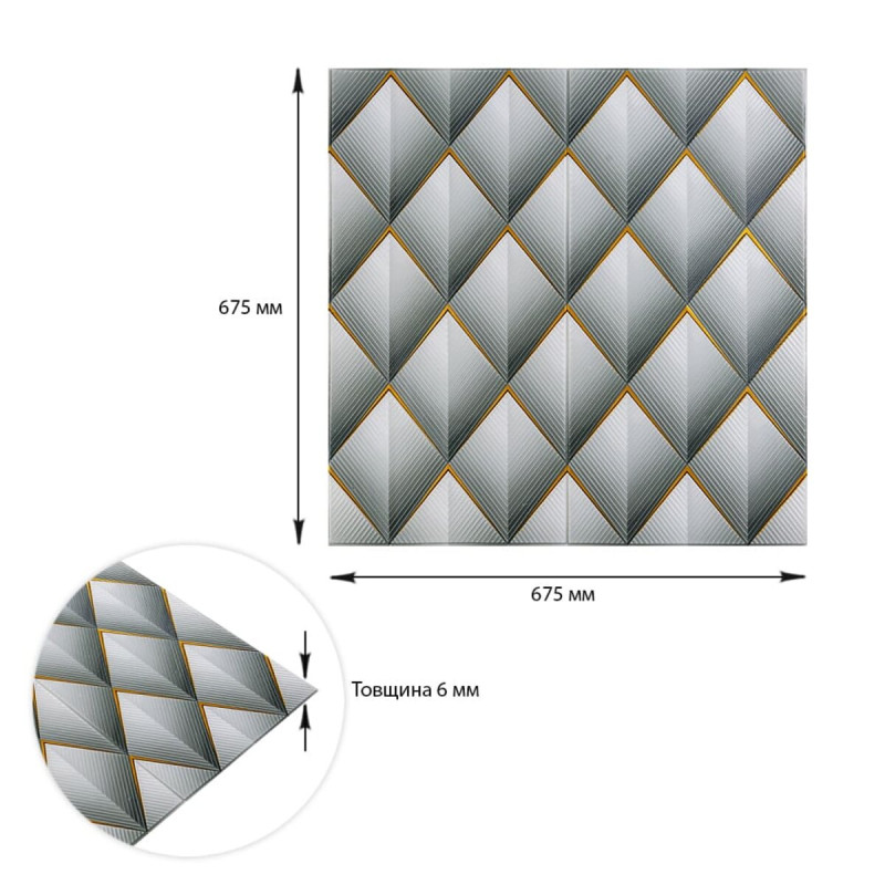 Панель стінова 3D 675х675х6мм Ромб сірий SW-00001986