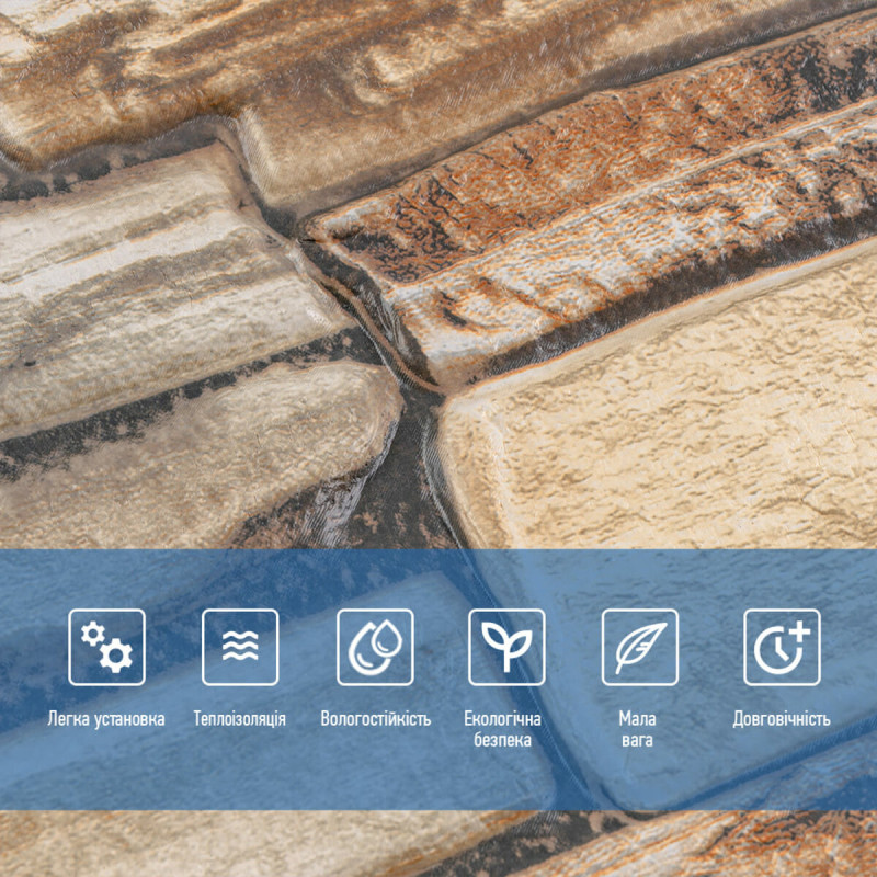 - Легкість монтажу: наявність клейового шару дозволяє встановити панелі без необхідності застосування додаткових матеріалів.