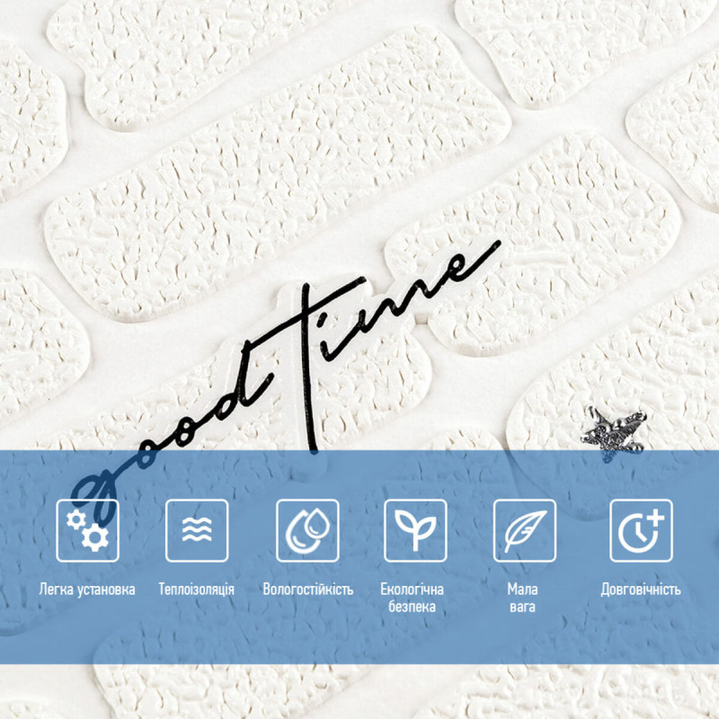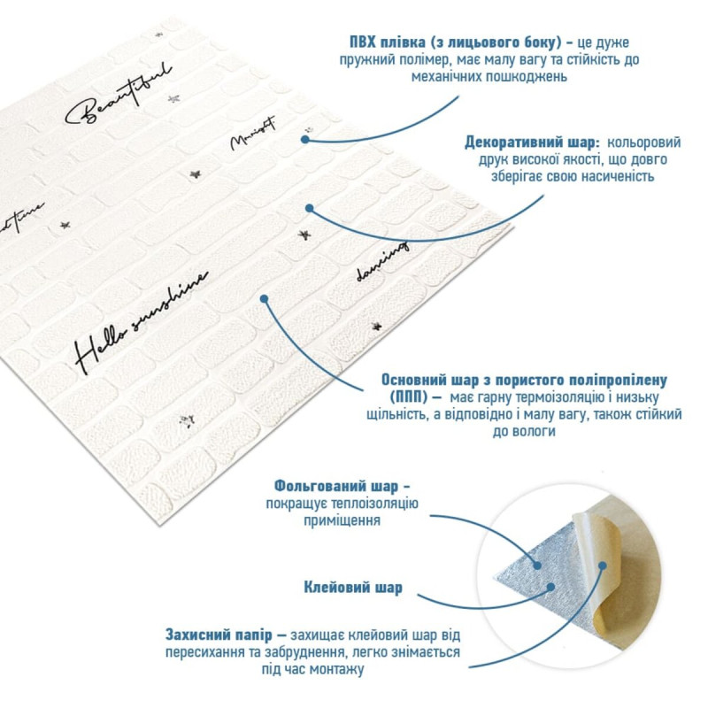 - Легкість монтажу: наявність клейового шару дозволяє встановити панелі без необхідності застосування додаткових матеріалів.