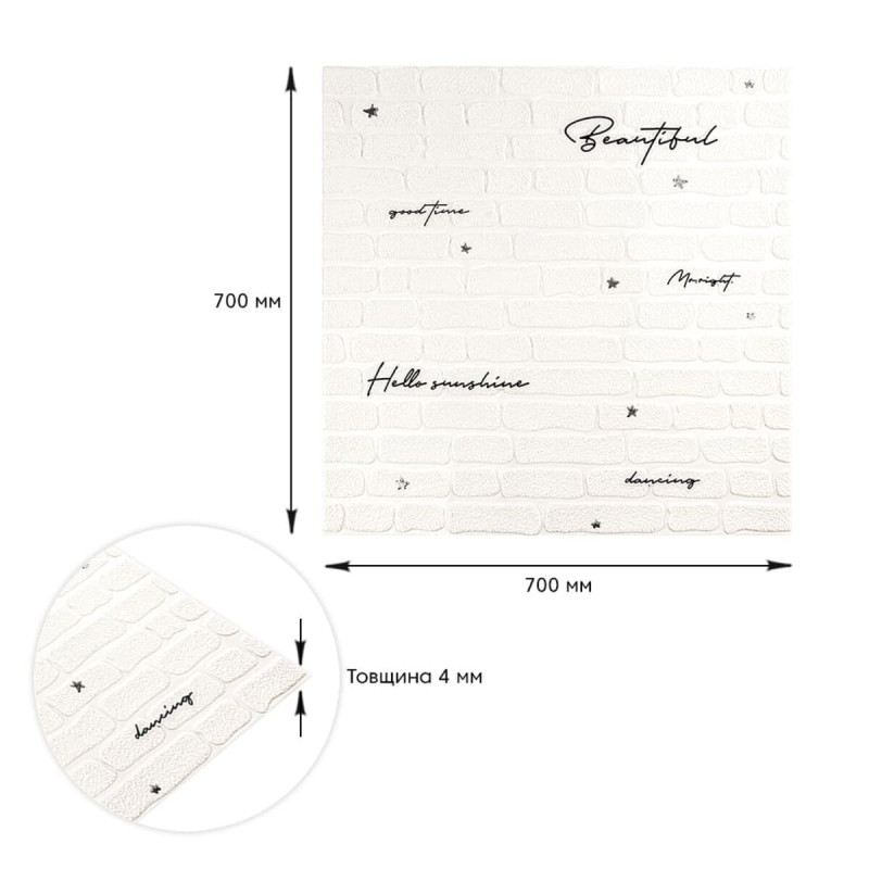 3D панелі самоклеючі – декоративне покриття для стін, виконане з легкого та міцного матеріалу – пористого поліпропілену (ППП). Основна особливість – рельєфний малюнок у вигляді цегли у широкому різноманітті кольорів та наявність клейового шару, що дозволяє встановити панелі без необхідності застосування додаткових матеріалів.