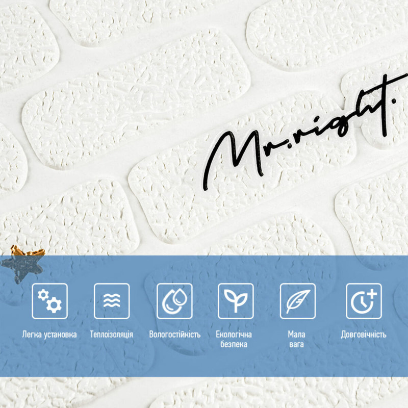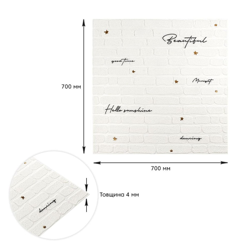 3D панелі самоклеючі – декоративне покриття для стін, виконане з легкого та міцного матеріалу – пористого поліпропілену (ППП). Основна особливість – рельєфний малюнок у вигляді цегли у широкому різноманітті кольорів та наявність клейового шару, що дозволяє встановити панелі без необхідності застосування додаткових матеріалів.