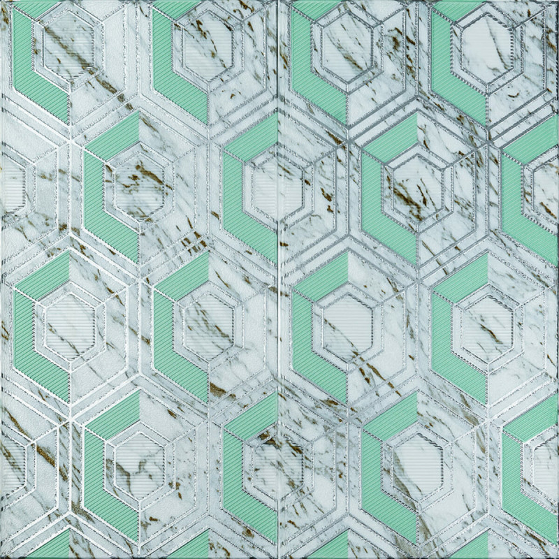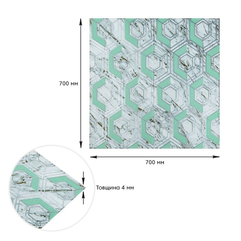 Панель стінова 3D 700х700х4мм Сіро-зелені стільники мармур SW-00002006
