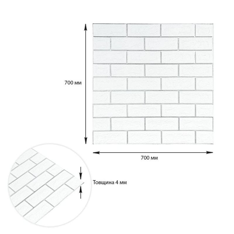 Панель стінова 700х700х4мм Біла цегла зі сріблом SW-00001502