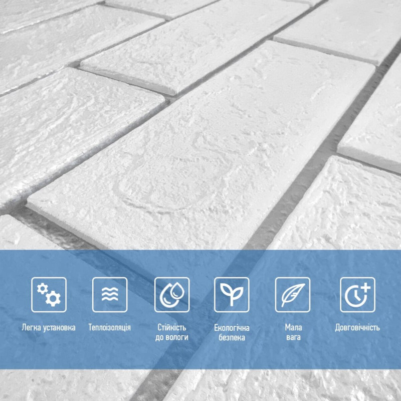 3D панелі самоклеючі – декоративне покриття для стін, виконане з легкого та міцного матеріалу – пористого поліпропілену (ППП). Основна особливість – рельєфний малюнок у вигляді цегли у широкому різноманітті кольорів та наявність клейового шару, що дозволяє встановити панелі без необхідності застосування додаткових матеріалів.