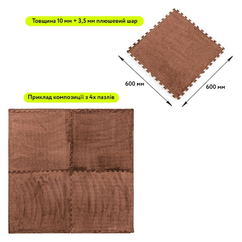 Підлога-пазл плюшевий 60х60х1см Коричневий (D) SW-00002083