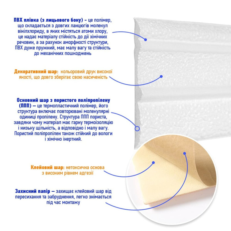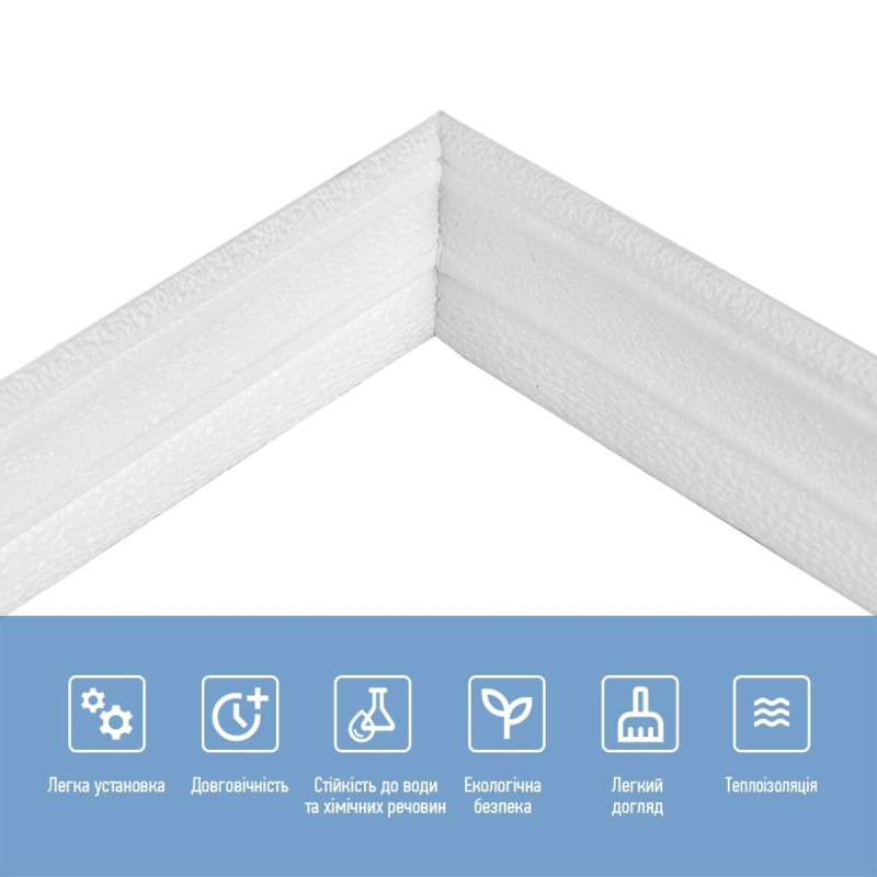 Плінтус ППППлінтус з пористого поліпропілену - декоративний елемент, який встановлюється вздовж нижньої частини стіни для прикриття стику між стіною та підлогою. Завдяки клейовій основі він легко монтується, без застосування додаткових матеріалів і є ідеальним доповненням у різних інтер’єрних рішеннях.