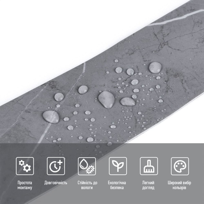 - Стійкість до вологи: вінілові плінтуси стійкі до вологи, що робить їх відмінним вибором для ванних кімнат, кухонь та інших приміщень з підвищеною вологістю, матеріал стійкий також до впливу пари, а також до появи плісняви. Плінтус підходить для створення фартуха кухні, можна клеїти біля плити на відстані не менше ніж 30-50 см;