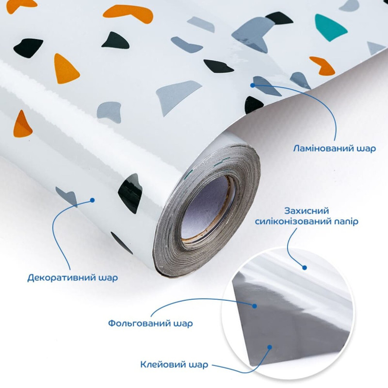 Вологостійкість: завдяки ламінації, плівка має підвищену стійкість до вологи, що робить її ідеальною для використання у приміщеннях з підвищеною вологістю, таких як кухня чи ванна кімната.