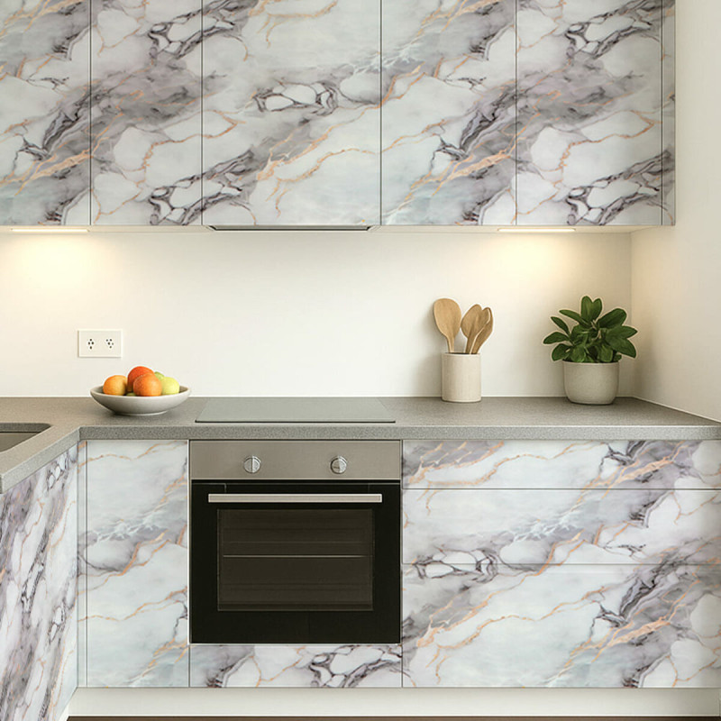 • Застосування: плівка ідеально підходить для внутрішніх оздоблювальних робіт, таких як декорування та облицювання поверхонь у житлових приміщеннях (кухня, вітальня, дитяча кімната, спальня, передпокій) та комерційних просторах (офіси, зони рецепцій, магазини, салони краси, фітнес-центри), для оновлення меблів, дверей та техніки.