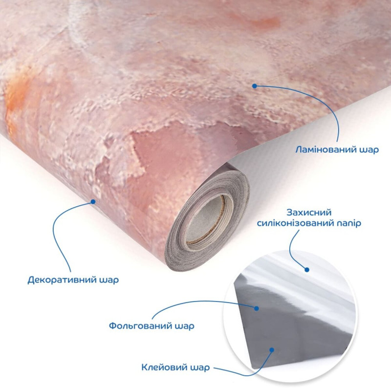 • Декоративний шар. Під ламінацією знаходиться шар з декоративним друком, на якому зображено малюнок або текстура, що імітують дерево, мармур, плитку чи інші матеріали. Цей шар надає плівці візуальну привабливість, що підходить для різноманітних інтер’єрних рішень.
