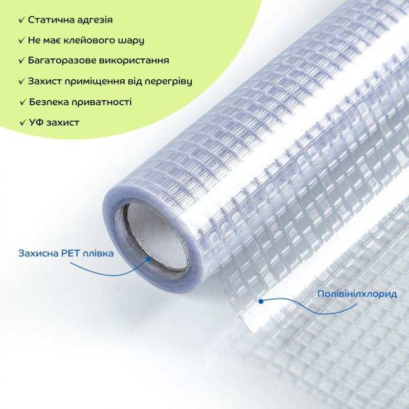 Віконна ПВХ-плівка – це декоративний матеріал, призначений для прикраси скляних поверхонь. Вона забезпечує приватність, захищає від ультрафіолетового випромінювання та додає естетичної привабливості вашому інтер'єру. Легко наноситься на будь-яке скло, перетворюючи його на непрозору поверхню та обмежуючи видимість через скло.