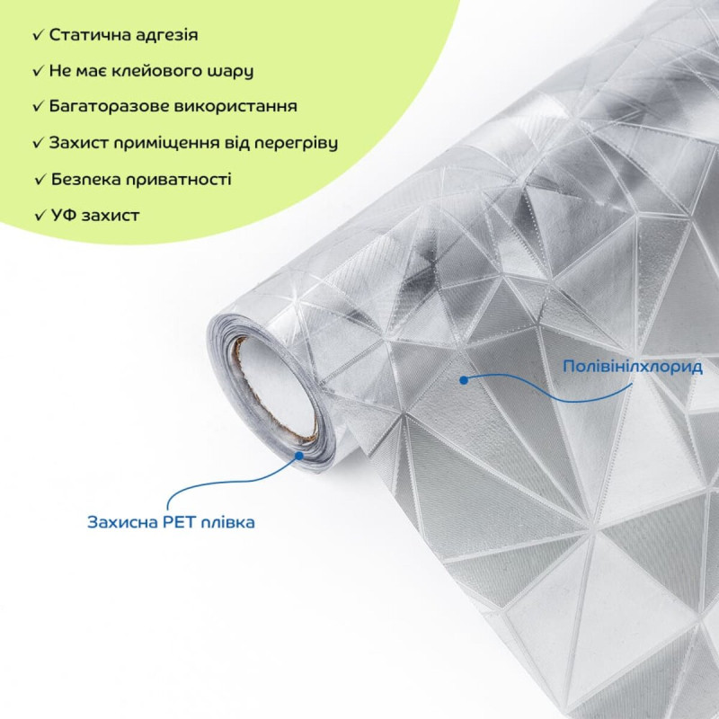 Віконна ПВХ-плівка – це декоративний матеріал, призначений для прикраси скляних поверхонь. Вона забезпечує приватність, захищає від ультрафіолетового випромінювання та додає естетичної привабливості вашому інтер'єру. Легко наноситься на будь-яке скло, перетворюючи його на непрозору поверхню та обмежуючи видимість через скло.