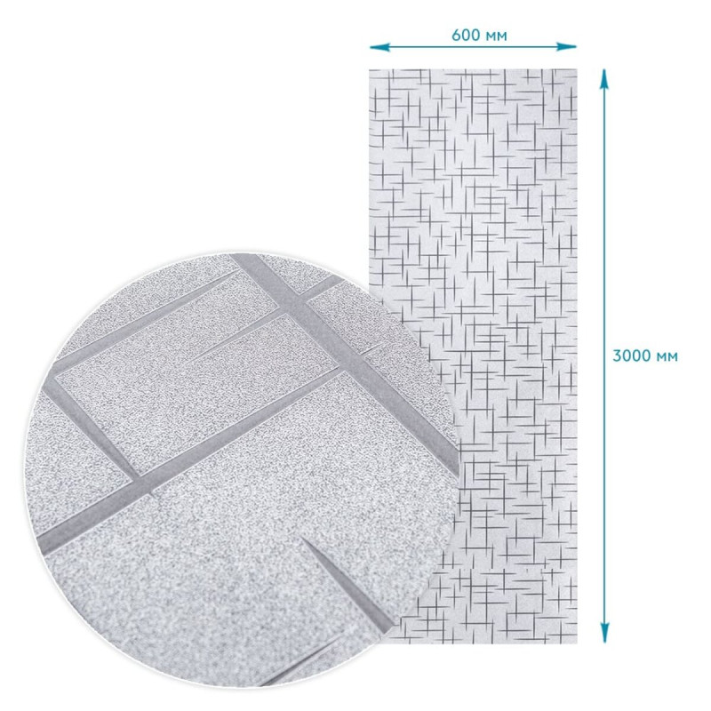 Площа покриття: 600х3000 мм – 1,8 м²